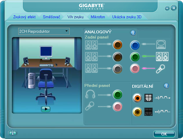 Asi by jsi měl někde ve správci zvuku správně nastavit ...vstupy a výstupy zvuku proto že deska podporuje 7.1. Chanel Audio.