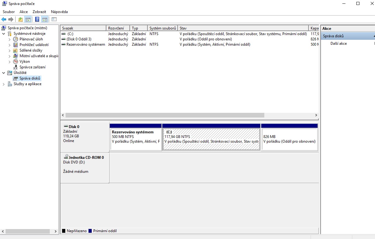 dej sem screen ze spravy disku - ovladaci panely - administrace - sprava disku