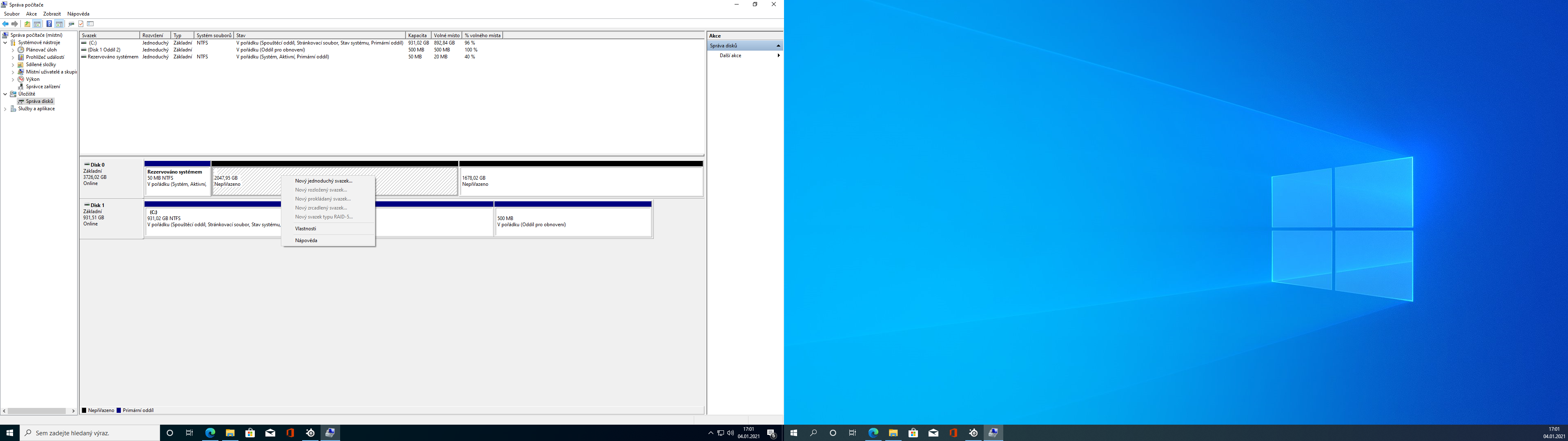 Dobrý den, Dnes mi došel nový pc a mam menší problém. V PC mam jedno M.2 SSD a HDD který má 4TB ale když se podívate HDD který má 4 Tera je rozdělený na dva články které bych rád spojil do jednoho. Bohužel nevím jak na to. Viz screenshot. Děkuji