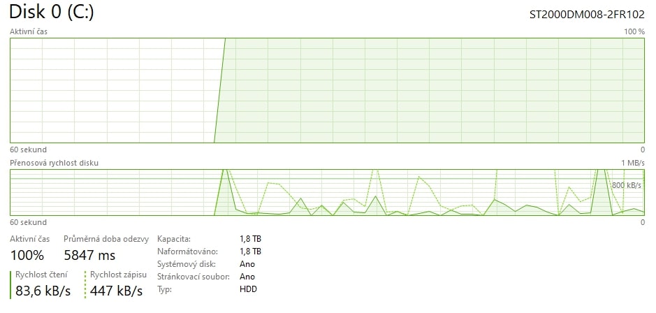 Dobrý den, posledních pár dní je disk vytížen na 100%, i když neběží žádná velká zátěž(viz obrázek). Neví někdo prosím co s tím?
