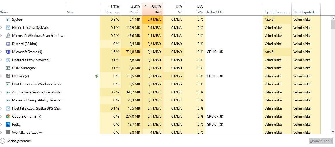 Vytížení disku na 100%