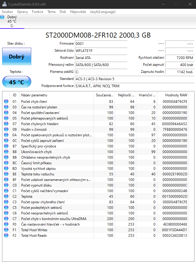 Coxx-cz píše:Stáhni a nainstaluj CrystalDiskInfo a vlož sem screen z tohoto programu.