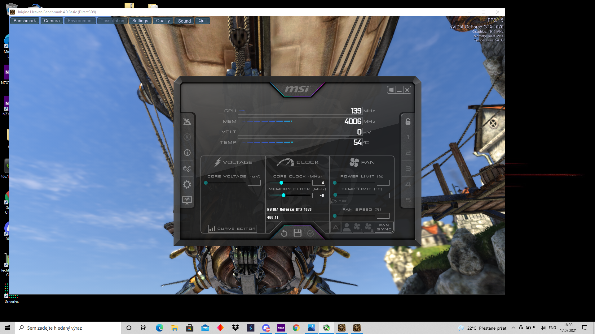 ani pri benchmarku se výkon nepohl ze zmíněných 139MHz