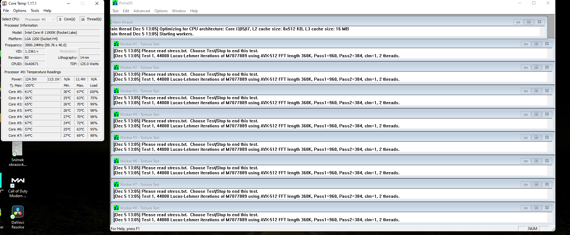 i9 2021 a i7 2017 - chápeš slovo zastaralý? Vím, že je i9 12900K a je to také rok 2021. Jenže ty jsi zakomplexovanej. Jinak posílám mé teploty při 100% zatížení. Při hraní jsou o malinko vyšší a dává mi 5Ghz. :) Stačilo upravit pár věcí.