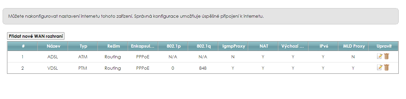 V příloze přikládám nastavení mého WAN pro ADSL a VDSL. Chtěl bych se Vás zeptat zda jsem nastavil modem správně či je modem vadný? Prosím Vás o radu. Děkuji.