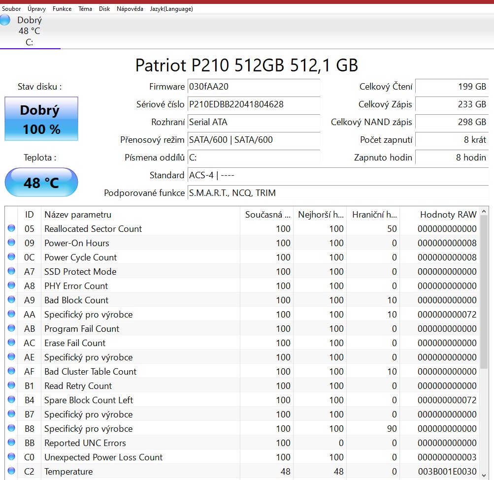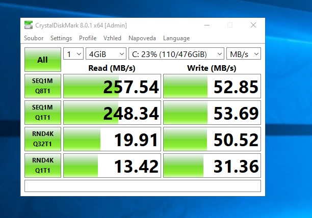 Zdravím, koupil jsem si ssd https://www.tsbohemia.cz/patriot-p210-5 ... 75088.html a změřil čtení a zápis a moc mi to nesedí. Nevím, jestli ty čtyři hodnoty mám sčítat. Kdyby jo, tak čtení by i sedělo, ale ten zápis? V čem je problém?