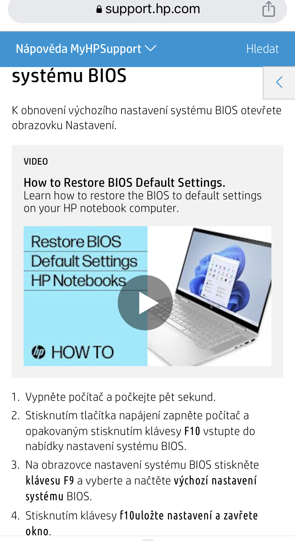 HP Laptop 17-cn0004nc i3 - nelze spustit - až po editaci v Biosu