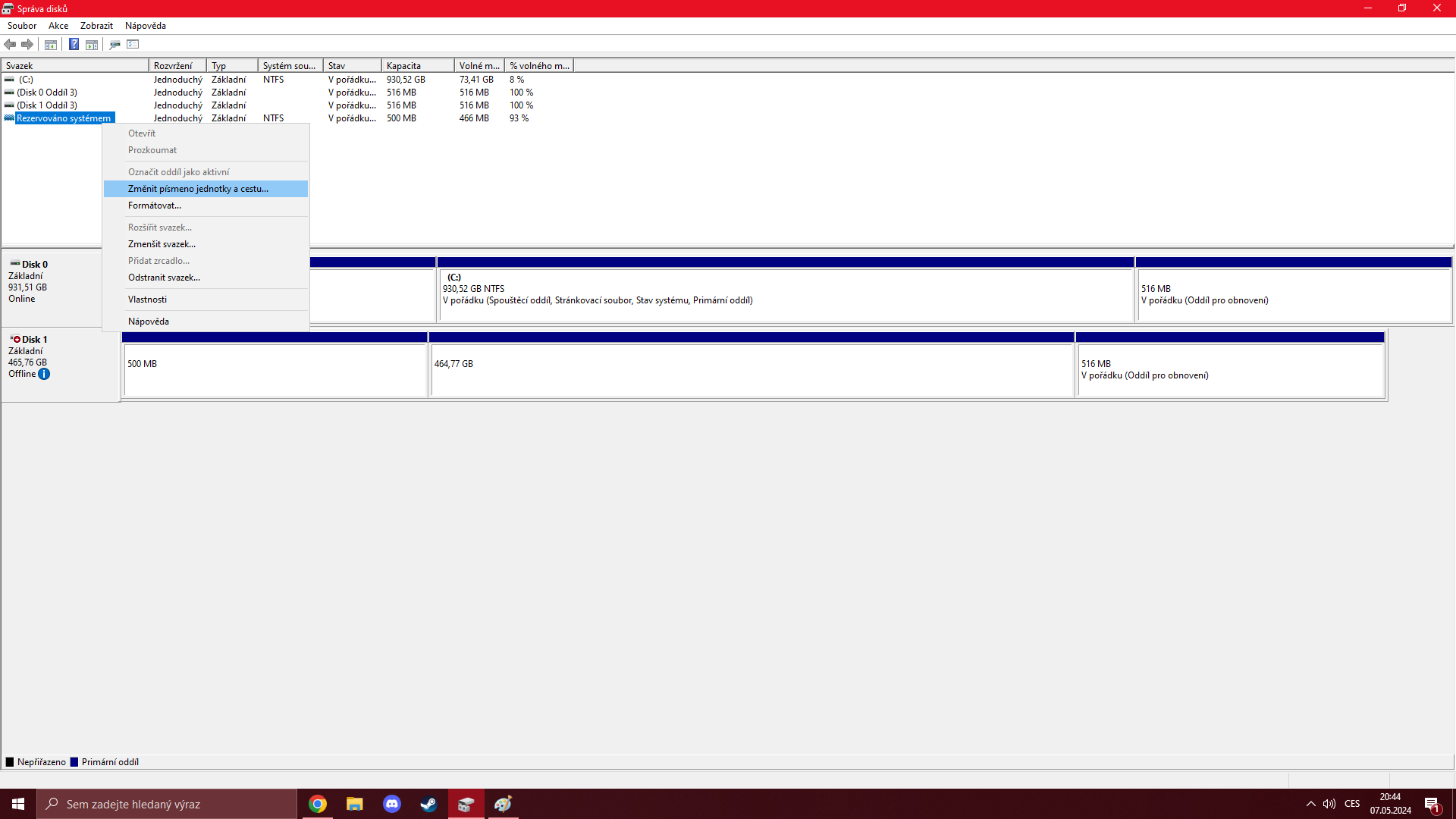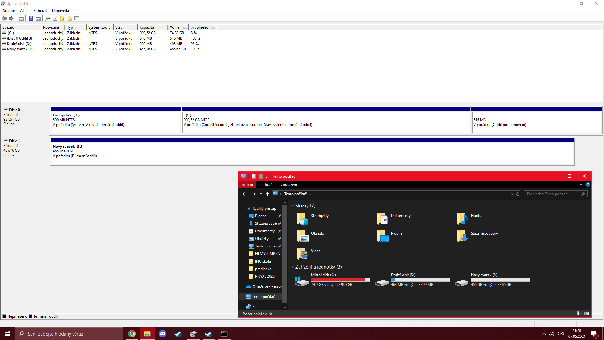 Sekundární disk F už mám nastavený a vše ok, ale podařilo se mi omylem vytvořit "Druhý disk D" na mém HLAVNÍM C: disku