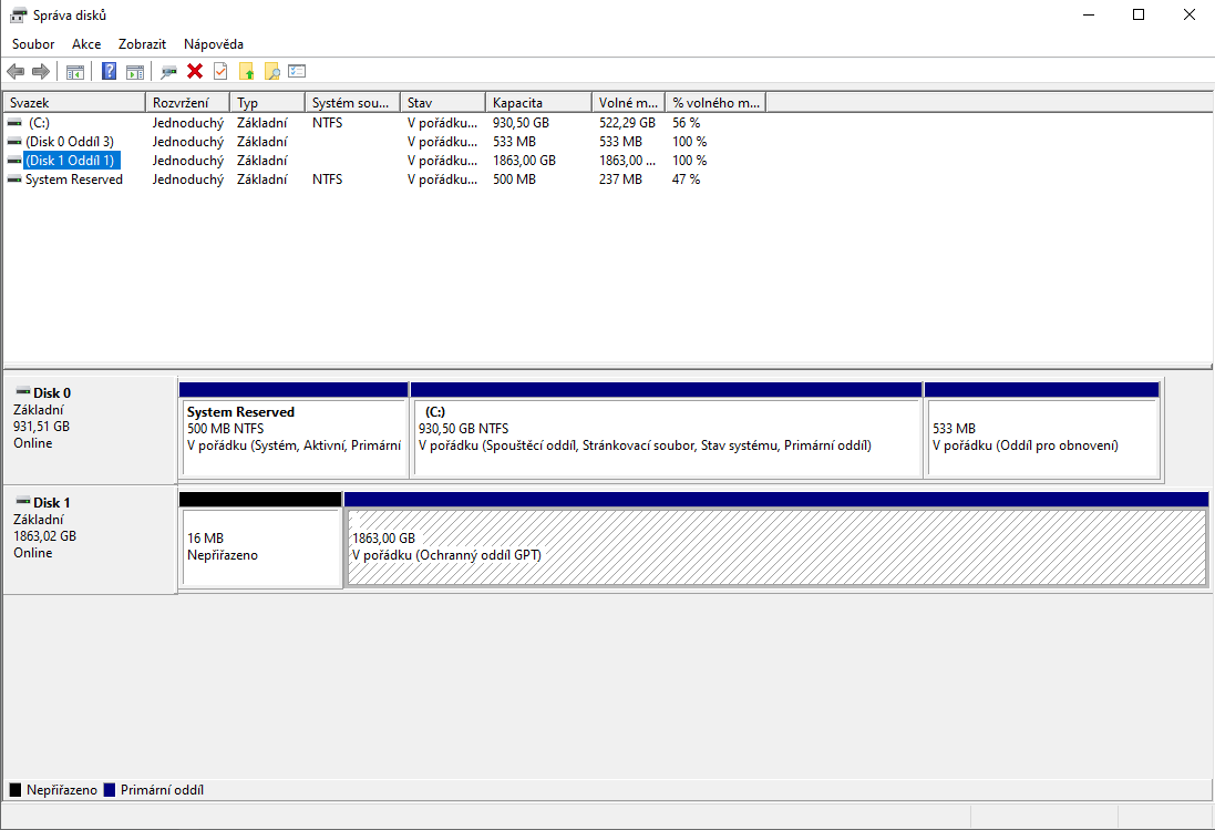Bios oba disky vidí, správce zařízení vidí 1? disk