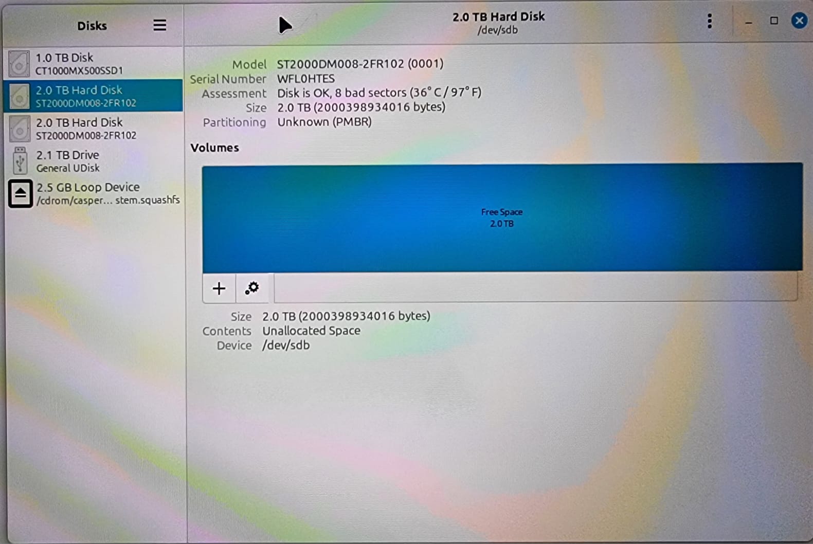 Takze Linux vidi oba disky, na jednom jsou ale vadne sektory.