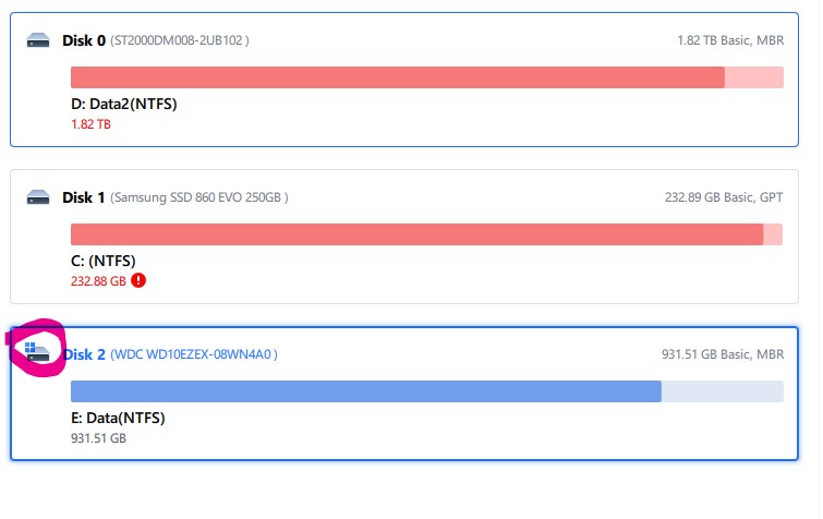 Podle screenshotu "problematický" je "Data2 (D:)" protože s diskem "Data (E:)" nabootovat jde.