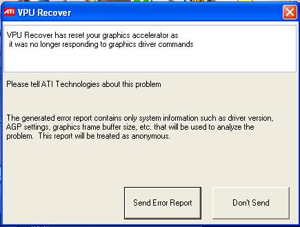 cus lidi pls poradte nekdo mam problem s grafikou . Hazi mi to nakou divnou chybu posledni dobou celkem casto . kdyz hraju sekne se mi to chvili nic a pak problikne monitor v pozadi se pak objevi chyba viz. obrazek) casto se stane ze se to sekne treba vickrat za sebou a na po treti uz je velky problem . nejde pak nic delat grafika je jako kdyby byla z roku nezer chleba a i na webu mi to jde po screenech pls sestava: CPU:AMD X2 5600+, MB: ASUS M2N Deluxe ,RAM: corsair 2x 1GB GRAFIKA: VGA Sapphire ATI HD 2900 PRO , ovladace 9.2 operak XP SP3 a jeste jsem se chtel zeptat kolik tato grafika ma prumer teplotu zda se mi ze mam dost vysokou predem diky za help