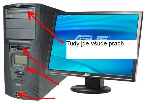 Já nechci čistit vevnitř :? Asai si nerozumíme.Vzduch co jde zepředu jde částečně přes ventilátor a filtr ale také se dostává přes ostatní štěrbiny tj.ono USB atd.pokud tam fouknu vzduch/no dotoho USB by to šlo i zezadu ale třeba ta čtečka karet/tak to jenom víc zase*u!!!Ten prach zůstavá v těch kompinentech do do skříně se ho moc nedostane.Vzor obr.