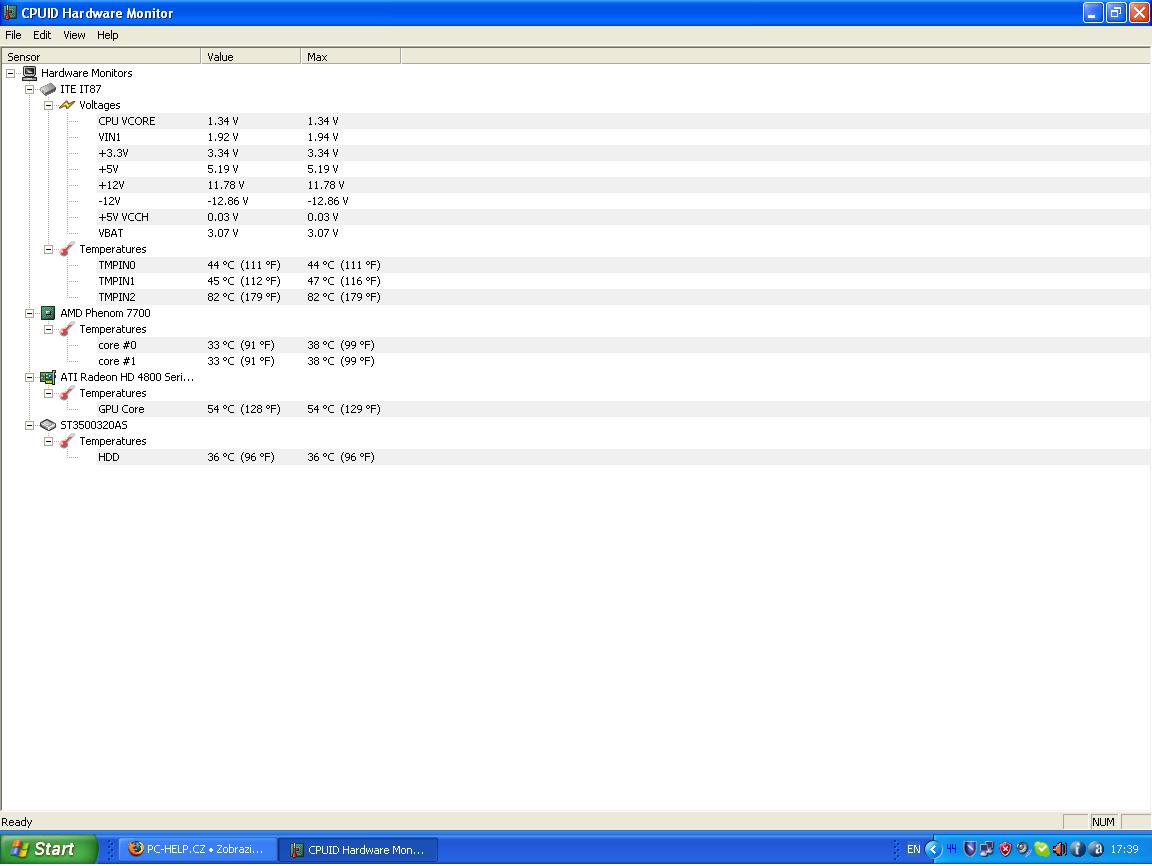 ta značka je docela důležitá a eště se mě tam nelíbí ta jedna teplota 82C ale nevím co to je, pokud máš nějakej stolní ventilátor tak skus sundat bočnici větrák namířit na to, a zkusit něco zahrát