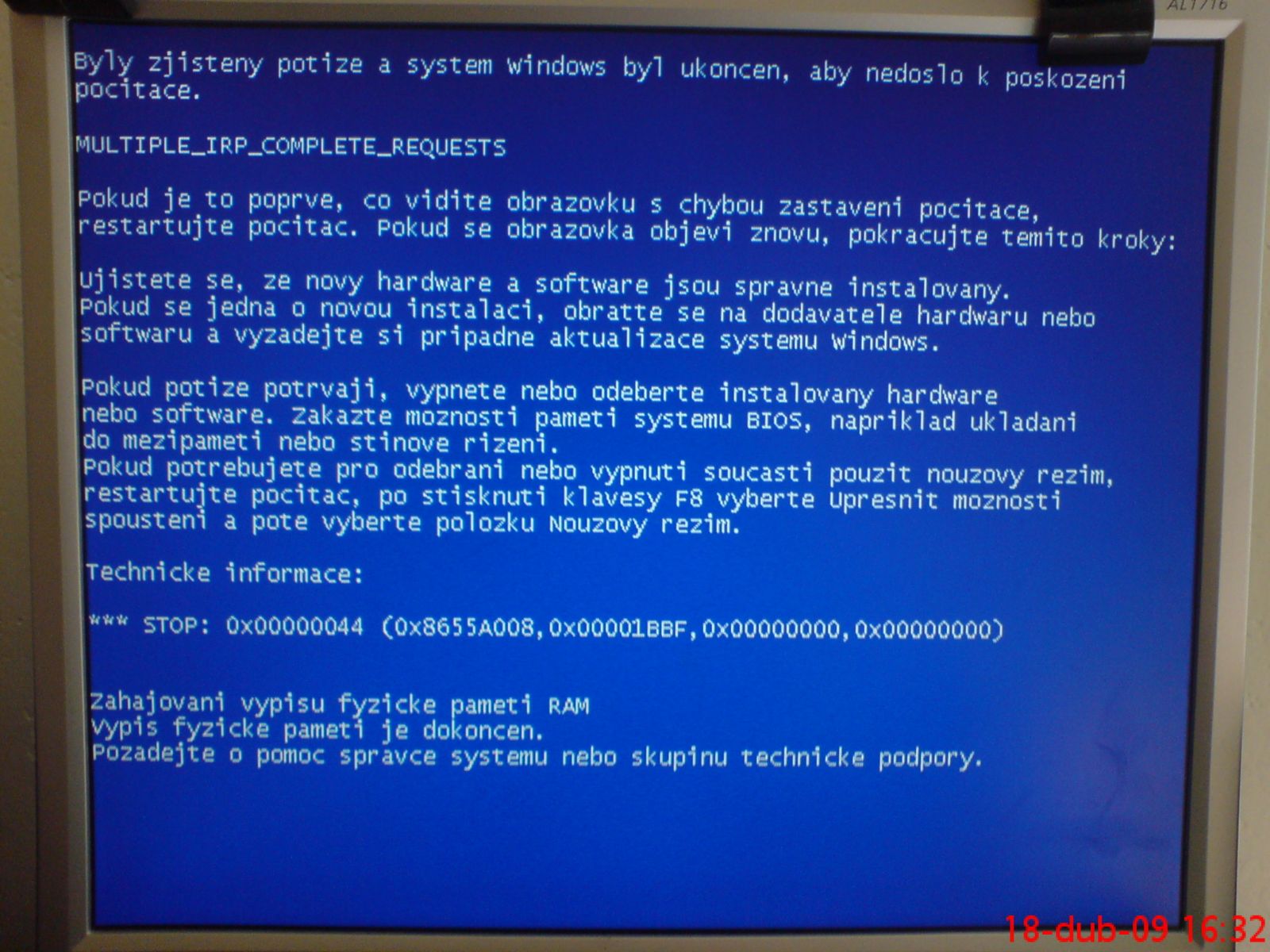 Pri hrani her se mi sekne pc,pote to vyhodi modoru obrazovku s napisy (viz. foto) a po vterine se restartuje pc.Prosim o radu.Predem dekuji.