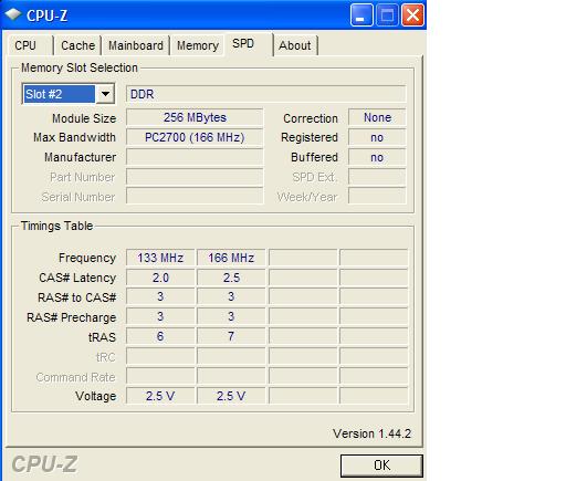 Ta paměť na screenu je docela vykopávka – latence je v pohodě (CL 2.5), ale 133 MHz je při DDR 266, což je opravdu velmi málo.