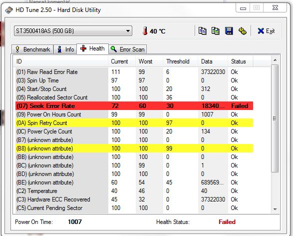 v HD Tune u všech SeaGate disků mám Health status: Failed.