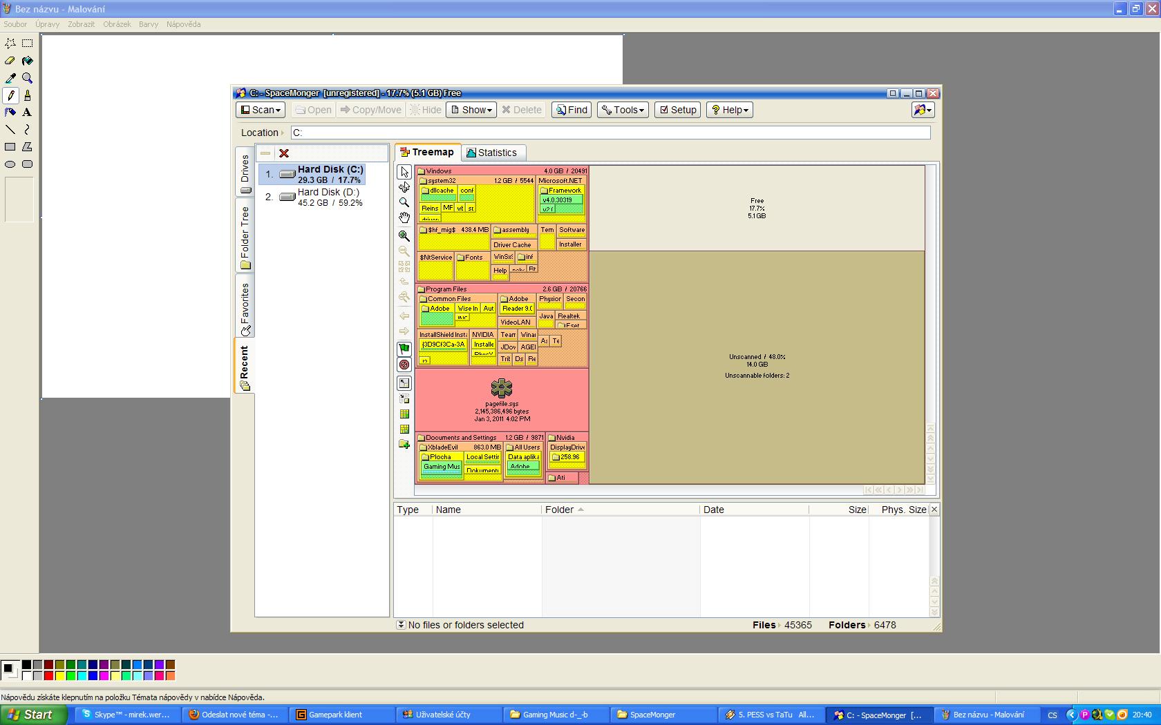 Dobrý den. Mám takový problem že mám STRAŠNĚ málo místa na disku (5,8GB z 30GB).. A to na ten disk nic neinstaluji. Vše dávám na disk D. Něco mi zabírá Windows ale co ten zbytek?! Zkoušel jsem místo pročistit spacemonger-em. Přidávám sem vám i obrázek ze spacemonger-u. A co prosím vás je to "Unnscanned folders"?