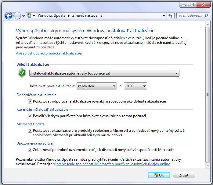 No zmení sa to, že sa PC nebudí (mne odvtedy čo som to zmenil), lebo PC sa kvôli tomu zobudí a hľadá nové aktualizácie. Neviem prečo to tak nastavili v Home Premium na tretiu v noci, ešte by som to chápal v nejakej verzii pre kancelárie, kde je predpoklad, že v tom čase sa na PC nepracuje a teda netreba prerušiť prácu a preštartovať, ale PC sa v noci zobudí, nainštaluje, preštartuje a potom sa zase uspí. Ale aký význam to má pre domáceho užívateľa to nechápem, iba že by si povedali v Microsofte, že nenechajú sa vyspať domácich užívateľov. :D Aktualizácie sú každý mesiac v druhý utorok v danom mesiaci medzi ôsmou a desiatou večer, vtedy ich dám vyhľadať, stiahnuť, nainštalovať a preštartovať, takže tú funkciu som ešte nepoužil pri periodických, stále to predbehnem, iba ak sú mimoriadne, vtedy ak nezachytím info, že budú a nevyhľadám ich ručne.
