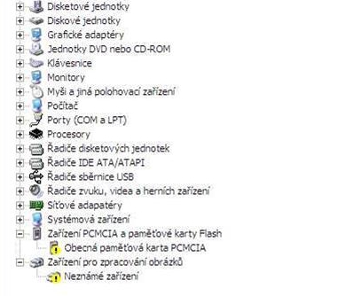 Ve správci zařízení mám žlutým vykřičníkem označeny dvě zařízení.Obecná paměťová karta PCMCIA a neznámé zařízení pro zpracování obrázků.Zkoušel jsem to opravit přes poradce při potížích,ale marně.Obecná paměťová karta flash mi hlásí,že toto zařízení nepracuje správně,protože systému Windows (používám XP Profesional)se nepodařilo načíst ovládače zařízením požadovaná.(Kód 31).Ale ovladač tam je a to ,WINDOWS/system32/DRIVERS/memcard.sys.Když zapojím flash kartu ozve se zvuk že systém nalezl nový HARDWARE ale ikona v Tento počítač ani nikde jinde není.V liště je tak jak má být bezpečně odebrat Hardware.USB mám v pořádku.U zařízení na zpracování obrázků mi hlásí,že nemam nainstalovaný ovládač.Jaký a odkud jej mám stáhnout nevím.Předem vám děkuji za radu. :idea:
