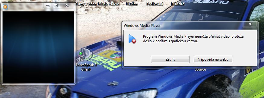 Program Windows Media Player nemůže přehrát video,protože došlo k potížím s grafickou kartou.