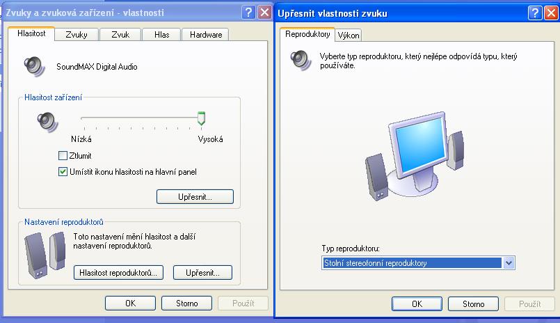 A máš ty reproduktory nastavené jako výchozí? Už nějakou dobu jsem jen na W7 takže se omlouvám, pokud to v XP není ale tuším by mělo být...