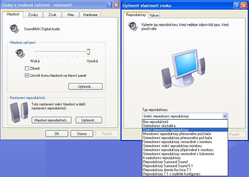 Mám stereo repráky a vychází z toho co jsem hledal na googlu, že mám asi puštěný zvuk 5.1 na stereo reprácích a dělá to bordel. Bohužel jsem nedošel na to, kde a jak to na své zvukové kartě přepnout - jedná se konkrétně o základní desku ASUS P5G41T-M LX2/GB (Eagle) s integrovanou zvukovkou Intel 82801GB ICH7 - High Definition Audio (A1), VIA VT1705 codec + nějaký převodník ATI Cedar/Park/Robson - High Definition Audio Controler, ATI Radeon HDMI. (Jen zjistit co to vlastně je za zvukovku a najít správný drivery byl skoro nadliský úkol). Skoro mám pocit, že ta zvukovka umí jen zvuk 5.1 - nebo je to v něčem jiném?
