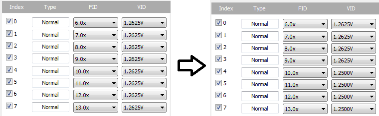Ahoj, po změně hodnoty na násobiči č.7 na 1.25V, zůstaly násobiče 0-3 beze změny: