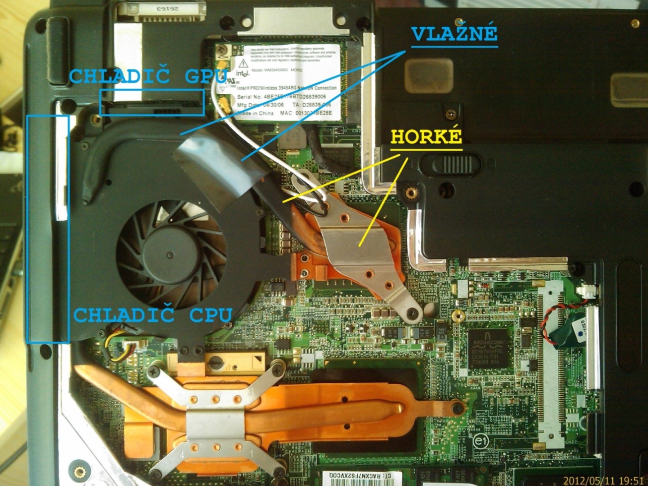 Ahoj, tak jsem asi přišel proč se vypíná...Náhodou jsem sáhnul na čip GPU a byl opravdu hodně teplý (CPU je Ok), po rozdělání celého heatsinku jsem vyfoukal prach. NB se v nečinnosti už nevypíná, ale jakmile se přidá nějaká zátěž (např. instalace programu) tak se opět vypne. Bohužel nemůžu změřit teplotu GPU, mám starší ovladače na GK ATI mob. RADEON X1600 upraveny přes mobility modder (tato karta nemá podporu ve win7, ale to je jiná kapitola..). Ještě mě napadlo vyměnit teplovodivou pastu - zde je současný stav: