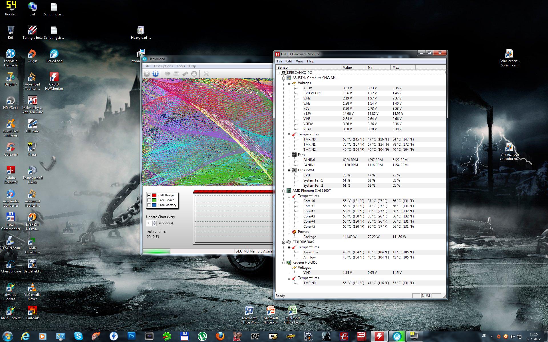 1) Spusť HeavyLoad a Hardware Monitor. V HeavyLoad spusť zátěžový test, po 10 min udělej screen Hardware Monitoru a ten sem hoď.