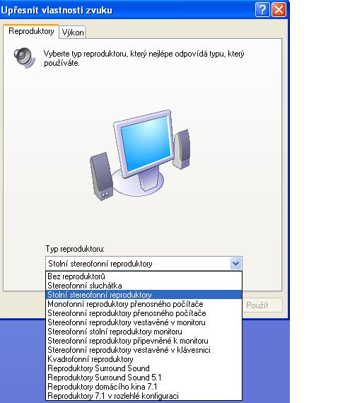 Předpokládám, že máš nastavené Reproduktory Surround Sound 5.1 a ne Stolní Stereofonní reproduktory