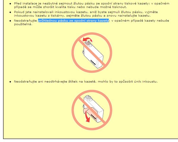 Páska u průtoku barvy.. zde je odkaz kde je výměna kazety popsána: http://support.epson-europe.com/onlineg ... /ink_4.htm .. Postupoval jsem podle manuálu ale o resetu tiskárny jsem tam nic nenašél :( (děkuji za rýchlou reakci).