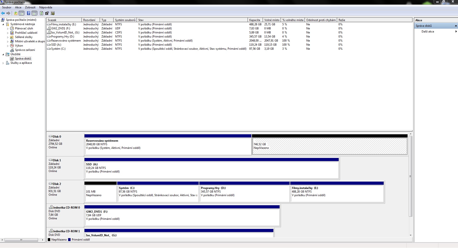 Problém s HDD - nepřiřazené místo na disku Vyřešeno
