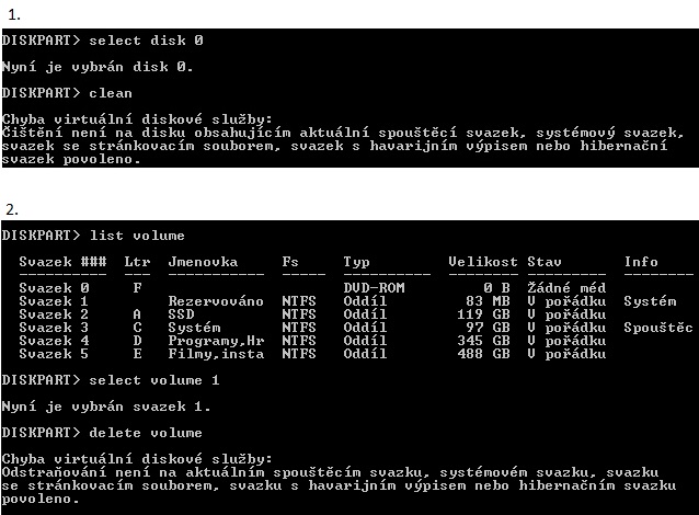 Vyjede Ti seznam partition na tom disku, postupně je budeš vybírat a odstraňovat