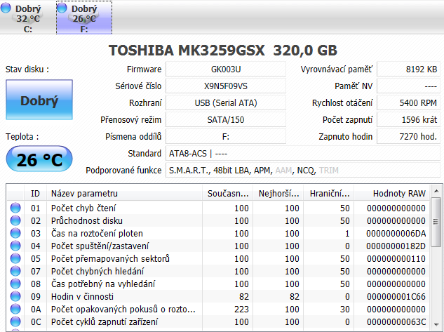 6 let? :O tak to se divím že ještě běží :) Hoď sem screen z crystaldiskinfo