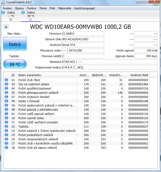 Zkontroluj systémový disk programem CrystalDiskInfo a vlož sem obr. výsledku testu.