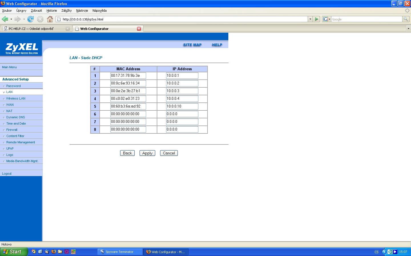 mám problém s připojením druhého počítače k ADSL modemu s routerem. Vše mám v kompu nastaveno dle návodu a když se chci z prohlížeče přihlásit k modemu přes IP adresu modemu, tak se nic nenačte. První komp se připojil v pohodě. Po vepsání udané IP adresy k modemu se hned načetl a mohl jsem nastavit heslo pro připojení, ale další PC se k modemu nepřipojí a ani nehodí chybu.