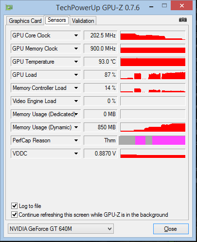 Přikládám obrázek, pořízený programem GPU-Z, při hraní hry World of Tanks.