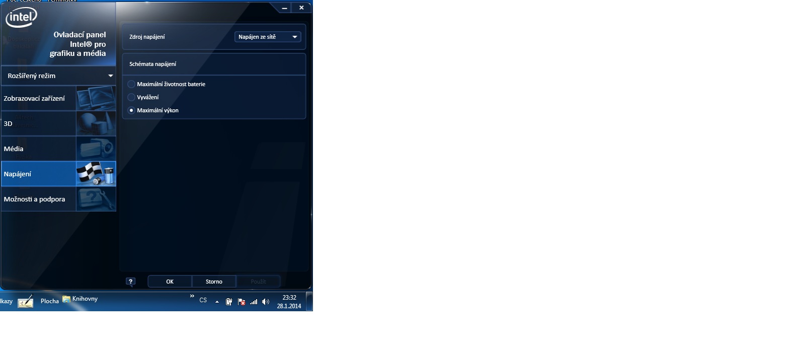 Dále si zkontroluj, zdali máš nastavený i maximální výkon v Intel Ovladačích, při napájení ze šítě (zásuvky). Hraješ, když máš notebook v zásuvce, ne?