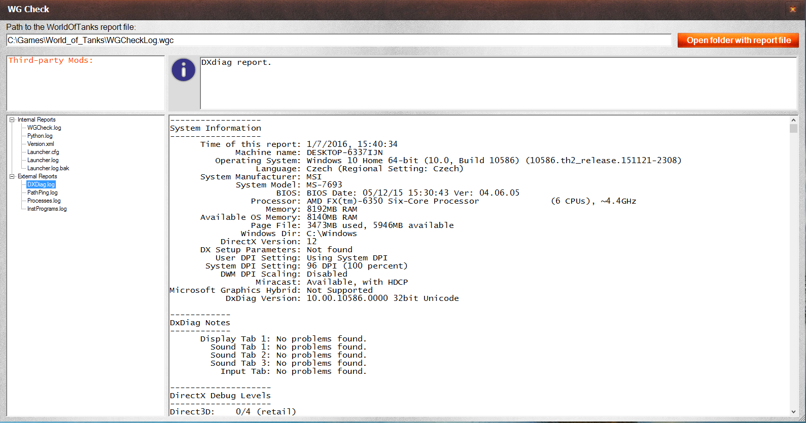 Ještě sem mohu dát WGcheck, co po mě chtěla podpora WOT. http://uloz.to/xwyMcyUi/wgchecklog-wgc