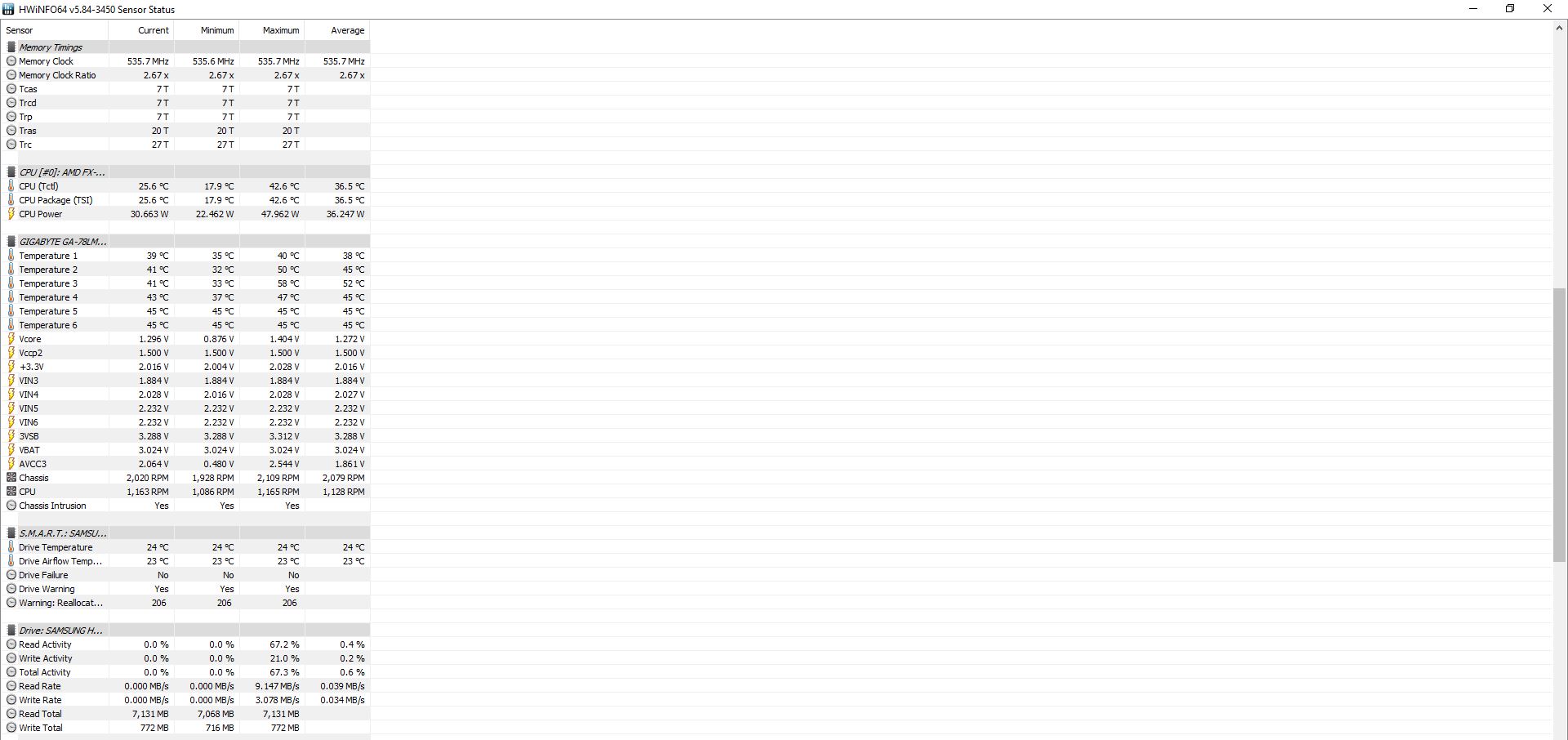 Teď bych si tipnul na HDD. Máš tam vykřičník, takže sem dej log z crystal disk info. Plus podívej se do biosu kolik ukazuje monitoring napětí na zdroji 3.3V, 5V, 12V a přesně to opiš sem. Ramky ti jedou asi o level pomalejc, než by mohly, ale to nezpůsobuje sekání. Můžeš dát ještě clear cmos bios při odpojeném počítači od elektriky+ podívat se na stránky výrobce, jestli nemá novější verzi a nahrát ji.