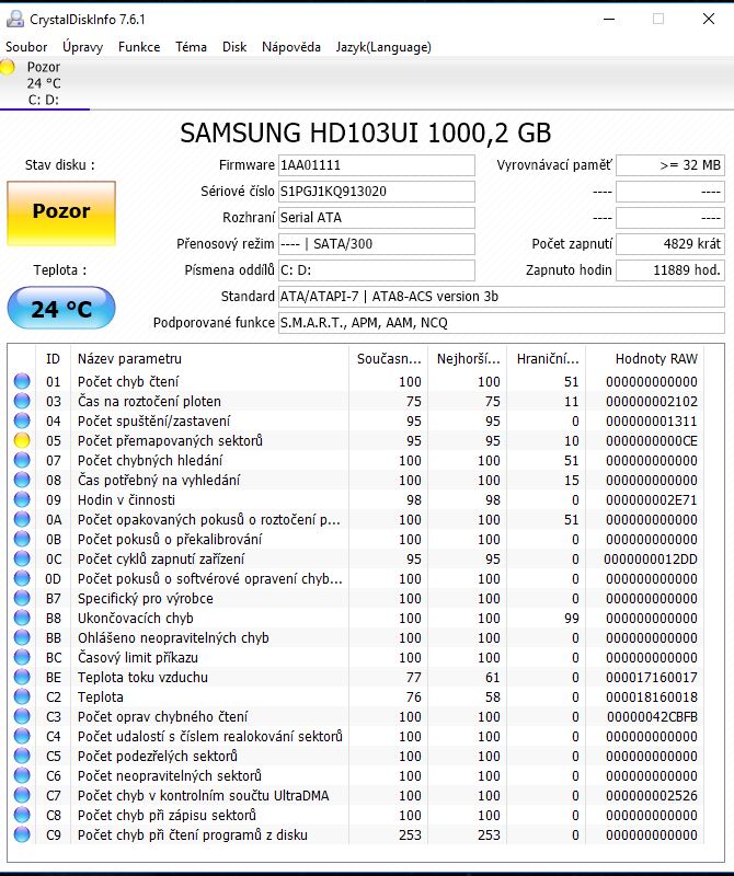 Tady je ten log z Crystal Disku... našlo to následující problém,říká ti to něco?