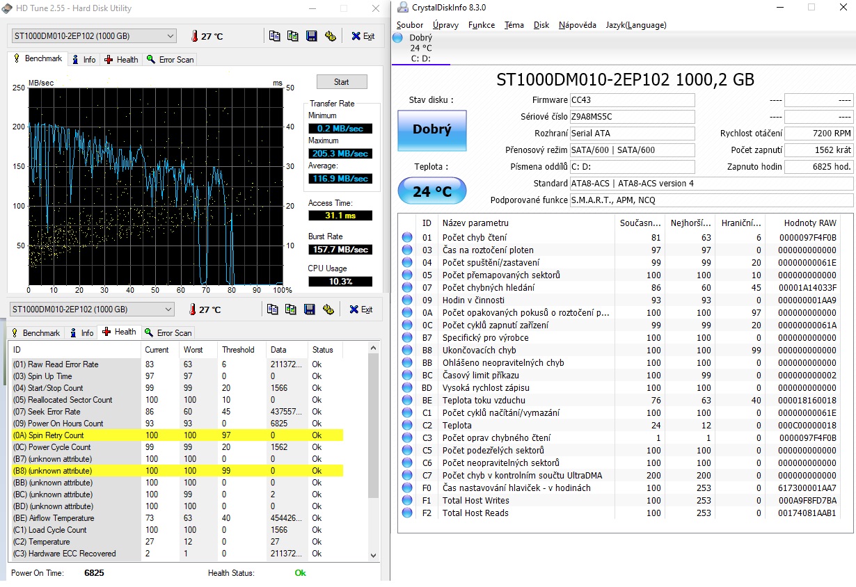 V prvé řadě by měl udělat stuartik pořádně výpis SMART (třeba ten z HDTune ze záložky Health, tam je to hezky i s komentem), na předchozí stránce sice výpis z Crystal disk info udělal, ale to je tak celkem na dvě věci, když na screenu nemá ten nejdůležitější pravý sloupec s hodnotama...
