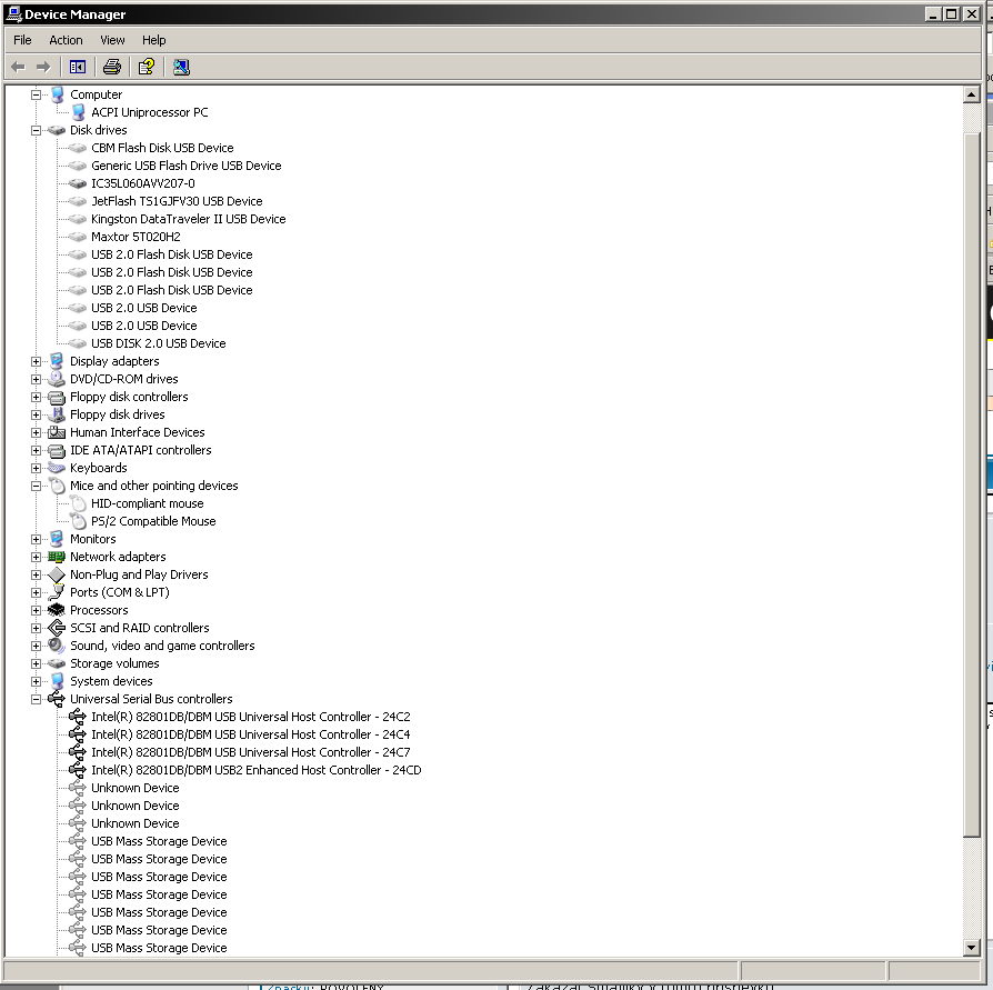 Stejnym zpusobem, jako jsi odebral Ty usb ovladace, podivej se jeste do diskovych jednotek a pripadne ostatnich medii (nevim jak tam bude uvedeny fotak) jestli tam sede polozky nejsou take, viz priloha... prip. nejake polozky tam kde mas fotak nebo kameru uvedenou...