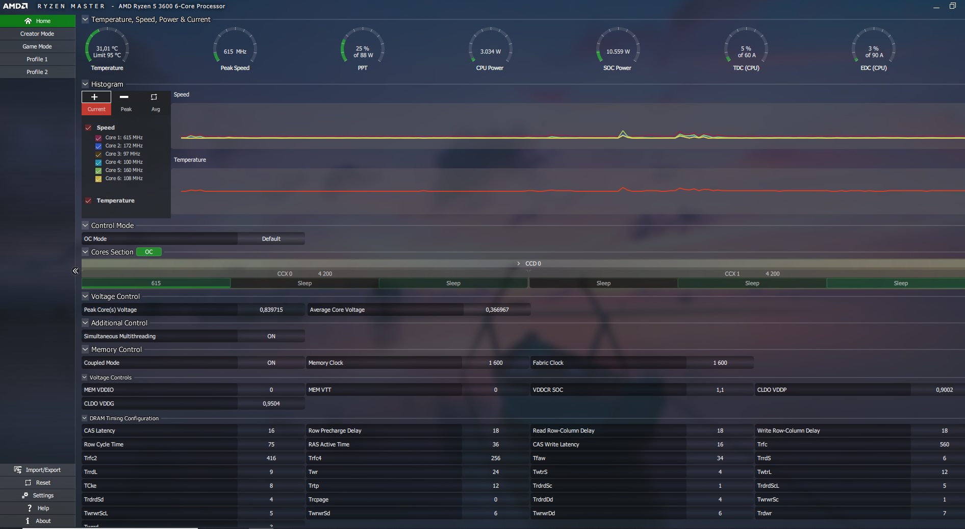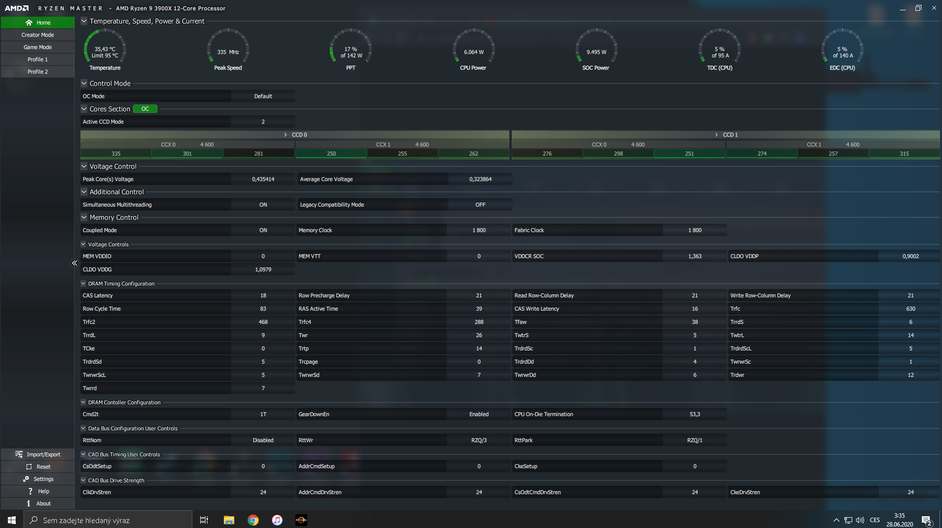 CPU voltage bylo v biosu skoro na 1.5V tak jsem to hodil na 1.3v a momentálně jsem v idlu na 36-37 podle Ryzen Masteru. Tudiž vše již v pohodě hádám? nebo bych měl udělat ještě něco? Podle x videií a stránek Asus má přepálené voltage v základu. a každý doporučuje nebo aspon jsem viděl 3-4 videa aby se na AMD 3900x změnilo z 1.5V na 1.3V Poprosil bych odpověd od Martaba nebo Petra22 děkuji + přikládám screenshot z Ryzen Masteru
