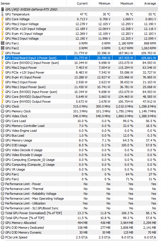 zdá se "přepálená" ... ten boost na 2060 byl běžně max 1950, tahle běží na 2000 něco ... větráky jak šílené ... zkusil bych v afterburneru, nebo jakou máš utilitu, ubrat power limit třeba na 95% a zkusit ... možná jen na 100 ... hwinfo ukazuje přes 106% power limit ... ta teplta vysoká není, ale za cenu vysokých otáček vrtulí