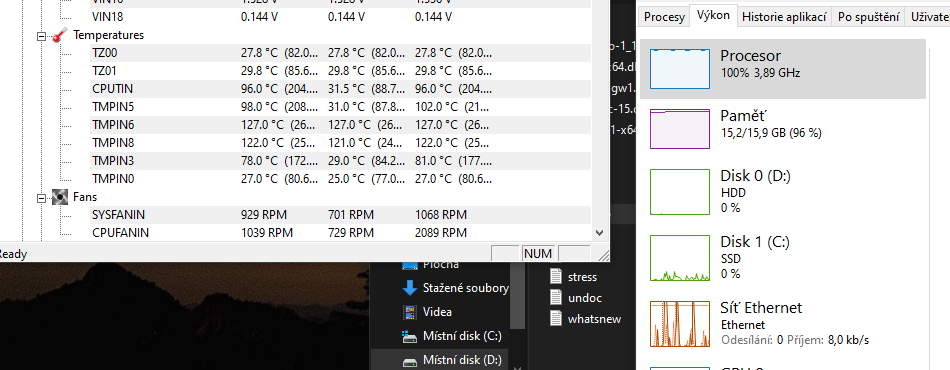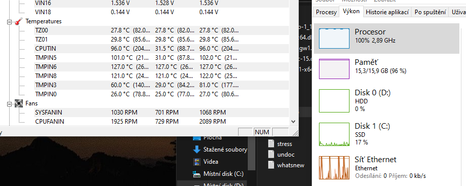 v idle pc jsou teploty úplně v pohodě, ale jakmile zapnu benchmark test, tak asi po 3minutách mi tyhle dvě teploty "cputin" "tmpin5" vyskočí šíleně rychle nahoru a po nějaké chvilce se procesor na chvíli podtaktuje asi na 10 sekund a jak teploty trochu klesnou, tak zase vyskočí nahoru a takhle furt dokola.
