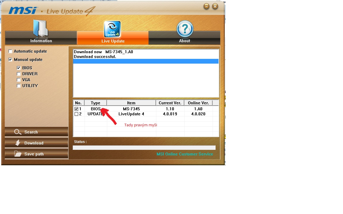 2) klikne se pravým myši v řádku s verzí BIOS a dá se download and install
