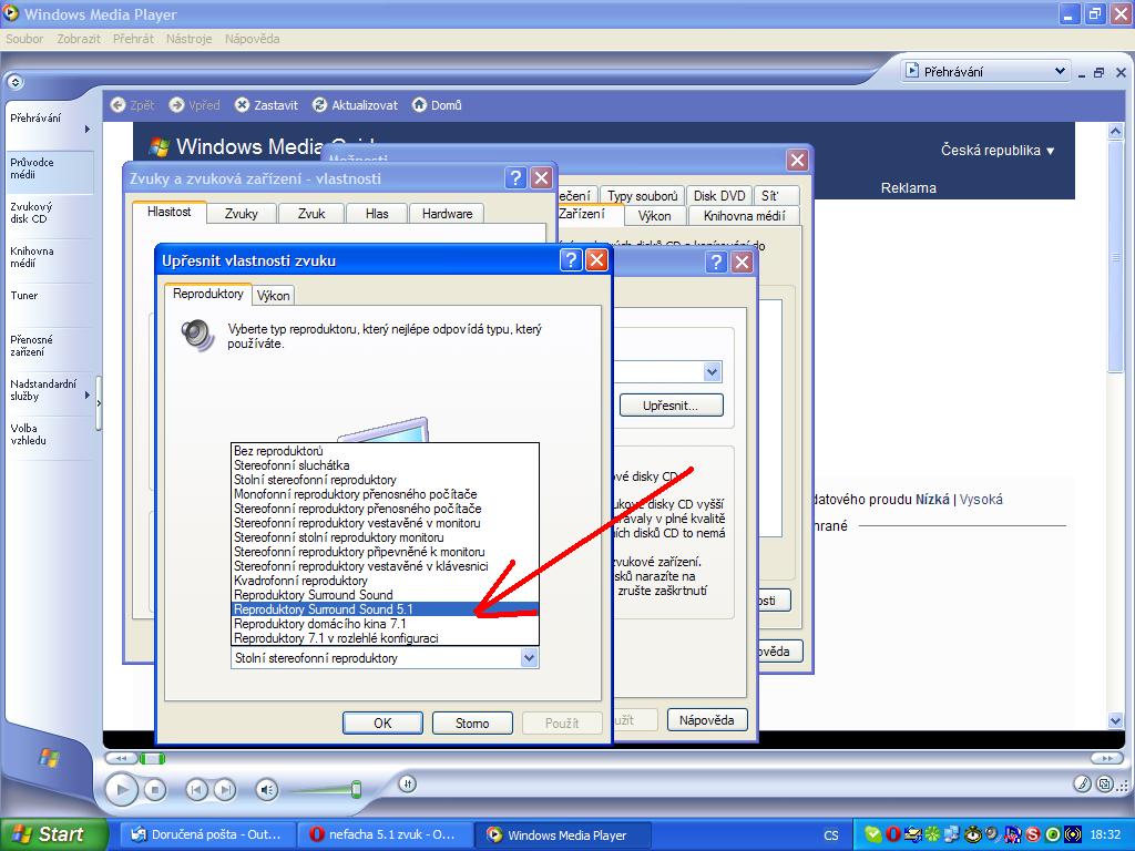 WMP - Nástroje- Možnosti - Zařízení - Repro - Vlastnosti - Upřesnit - Nastavení repro - Upřesnit - Vybrat a potvrdit O.K.