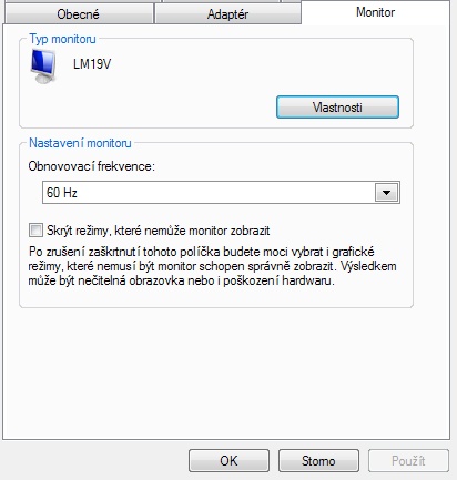 Tentokrat ani po ctyrech reinstalech ovladace nejde nastavit optimalni rozliseni. Jede to na 1280x960. Jsem zvedavy, kdy uz nepujde ani tohle.